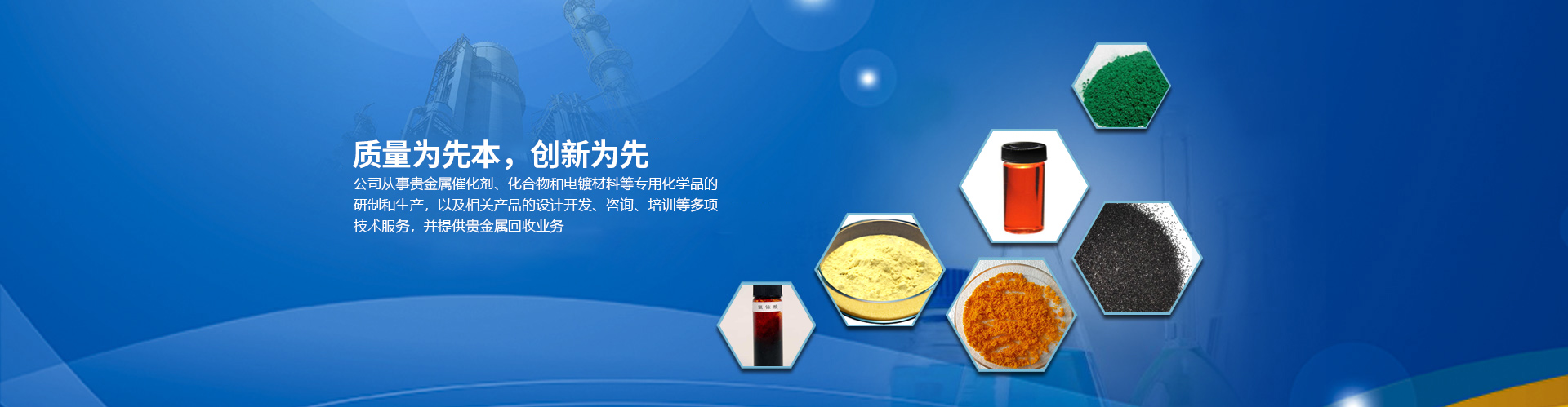 目前公司的主要產(chǎn)品有:醋酸鈀、氯化鈀、硝酸鈀、硫酸鈀、氯鉑酸、反-二(三苯基膦)二氯化鈀、四(三苯基膦)鈀、乙酰丙酮鈀;三氯化銠、辛酸銠、碘化銠、硝酸銠、醋酸銠、三苯基膦氯化銠、三苯基膦乙酰丙酮羰基銠、三苯基膦氯化銠、乙酰丙酮二羰基銠等,廣泛應(yīng)用于藥物合成、石油化工、精細(xì)化工和電鍍領(lǐng)域。本公司對(duì)所有產(chǎn)品進(jìn)行嚴(yán)格檢測(cè)從定量和定性方面嚴(yán)把質(zhì)量關(guān),并通過(guò)ISO90001質(zhì)量體系認(rèn)證。